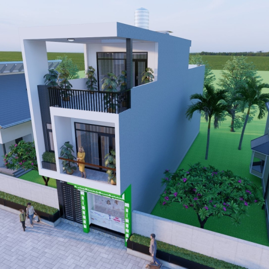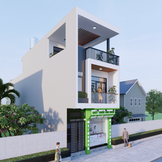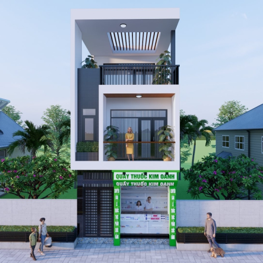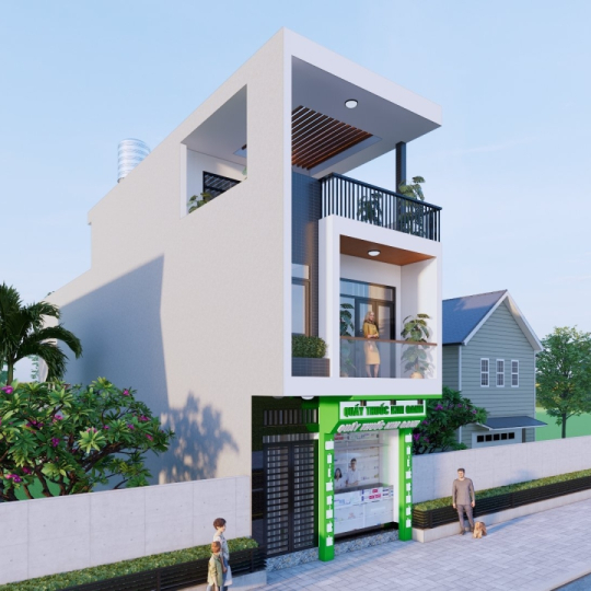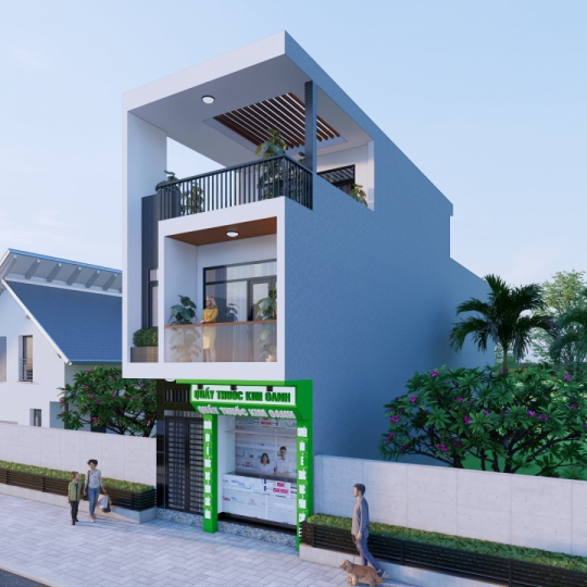 Công trình nhà Phố Liền kề 1 trệch 2 lầu sân Thượng mái bê tông cốt thép: Chủ đầu Phạm Minh Phú - Quầy Thuốc Kim Oanh