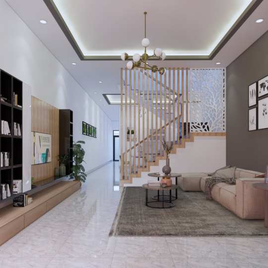 + Tầng Trệch: Nhà Thuốc, Phòng Khách + Nhà xe, Phòng Bếp, 1 Phòng Ngủ, Nhà Tắm + Nhà Vệ Sinh tách rời, Sân Sau